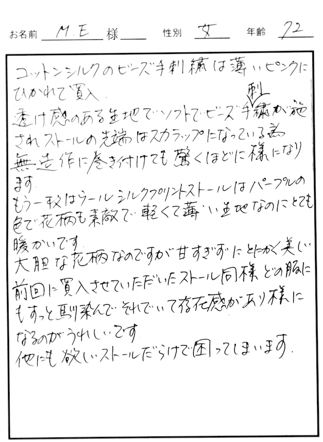 レビューの商品:コットンシルクストール:手刺繍デザイン