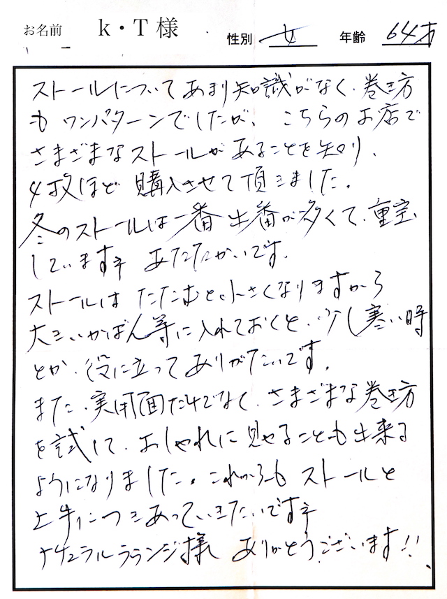 丁寧なお手紙つきで送ってくださるのがうれしいです。