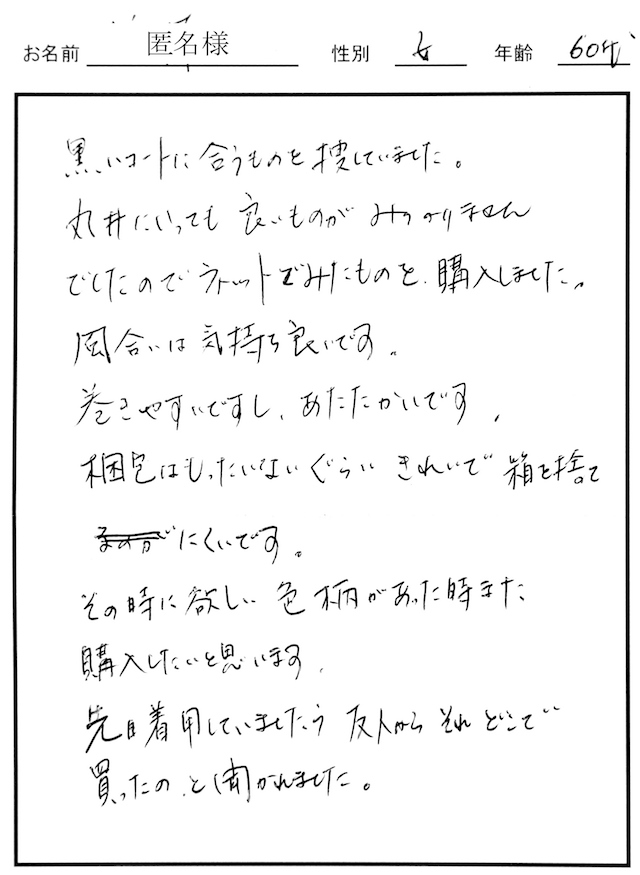 風合いは気持ち良く、 巻きやすいしあたたかいです。