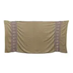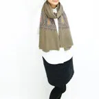 195cm×100cm大判ショールサイズで、巻きでも羽織でもどちらも使いやすいストールです。特に羽織は全面に施された刺繍が美しく輝き、サッとあしらうだけでゴージャスな雰囲気に変化します。横幅が特に長いのでドレスや着物などの羽織物としても重宝します。