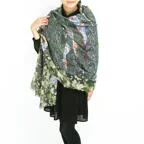 非常に大きなショールサイズで、広げて羽織れば上半身をすっぽりと覆うことができます。縦横の長さも十分にあるため、巻き方の自由度が広がります。程よいボリューム感と立体感を簡単につくることができるため、一巻きでこなれた印象になります。面積もあるので、真夏の室内での冷房対策や膝掛けとしても使いやすくなっています。