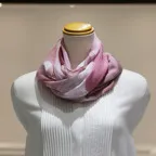 非常に目が細かく、柔らかい肌触りに仕上がっています。敏感肌の方や首に巻くことが苦手な方も安心して身につけることができます。