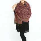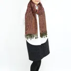 スタンダードな大判サイズで、首に巻くことはもちろん、室内でのひざ掛けにも、肩から羽織る使い方もできます。特に羽織りは、パッと華やかにエレガントな雰囲気に変わります。上半身を覆えるので、着ている服を気にせず合わせることができます。忙しい朝もコーディネートを気にする必要はありません。