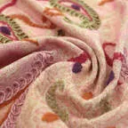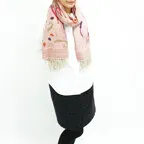 ぱっと目を引く華やかな色使いと立体的な刺繍が目を引く一枚。ゆるっと巻くだけでアクセント効果も抜群です!