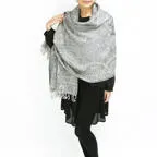 スタンダードな大判サイズで、首に巻くことはもちろん、室内でのひざ掛けにも、肩から羽織る使い方もできます。特に羽織りは、パッと華やかにエレガントな雰囲気に変わります。上半身を覆えるので、着ている服を気にせず合わせることができます。忙しい朝もコーディネートを気にする必要はありません。
