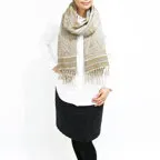 肩の力を抜いてリラックスして巻けるウールストール。落ち着いた色使いで合わせやすくなっています。