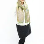 スタンダートな大判サイズで巻いても羽織っても、どちらも使いやすいタイプです。特に羽織は全体の印象がパッと華やかに、エレガントな雰囲気に変化します。