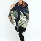 アートと遊ぶ、ダイナミックな幾何学デザイン。ウール特有のちくちく感が苦手な方も気持ちよく身につけることができます。