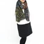 非常に大きなショールサイズで、広げて羽織れば上半身をすっぽりと覆うことができます。縦横の長さも十分にあるため、巻き方の自由度が広がります。程よいボリューム感と立体感を簡単につくることができるため、一巻きでこなれた印象になります。面積もあるので、真夏の室内での冷房対策や膝掛けとしても使いやすくなっています。