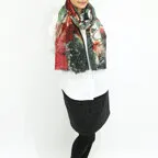 非常に大きなショールサイズで、広げて羽織れば上半身をすっぽりと覆うことができます。縦横の長さも十分にあるため、巻き方の自由度が広がります。程よいボリューム感と立体感を簡単につくることができるため、一巻きでこなれた印象になります。面積もあるので、真夏の室内での冷房対策や膝掛けとしても使いやすくなっています。