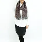 スタンダードな大判サイズで、首に巻くことはもちろん、室内でのひざ掛けにも、肩から羽織る使い方もできます。特に羽織りは、パッと華やかにエレガントな雰囲気に変わります。上半身を覆えるので、着ている服を気にせず合わせることができます。忙しい朝もコーディネートを気にする必要はありません。