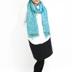 スタンダードな大判サイズで、首に巻くことはもちろん、室内でのひざ掛けにも、肩から羽織る使い方もできます。特に羽織りは、パッと華やかにエレガントな雰囲気に変わります。上半身を覆えるので、着ている服を気にせず合わせることができます。忙しい朝もコーディネートを気にする必要はありません。