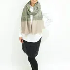 バランスの良い大判サイズで、巻きでも羽織でもどちらも使いやすいストールです。特に羽織は全面に施された刺繍が美しく輝き、サッとあしらうだけでゴージャスな雰囲気に変化します。