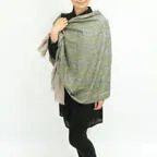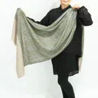 このカシミヤストールには最も繊細なインドカシミール地方ラダック産カシミヤ糸(パシュミナ)が使われています。そのため手織りカシミアストールの中でも最も目が細く繊細な生地となっています。薄くて軽くてやわらかい最上級の一枚です。