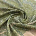 このカシミヤストールには最も繊細なインドカシミール地方ラダック産カシミヤ糸(パシュミナ)が使われています。そのため手織りカシミアストールの中でも最も目が細く繊細な生地となっています。薄くて軽くてやわらかい最上級の一枚です。