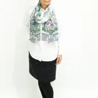 スタンダードな大判サイズで巻きでも羽織でもどちらでも使いやすくなっています。特に春夏の日除けや冷房対策としても使いやすく、ファッションのアクセントとしてなら一年中使うことができます。