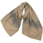 195cm×100cm大判ショールサイズで、巻きでも羽織でもどちらも使いやすいストールです。特に羽織は全面に施された刺繍が美しく輝き、サッとあしらうだけでゴージャスな雰囲気に変化します。横幅が特に長いのでドレスや着物などの羽織物としても重宝します。