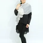 スタンダードな大判サイズと軽やかな質感で、巻きだけでなく羽織でも合わせやすいタイプです。トップスがほのかに透けて見え、上品な印象を与えてくれます。