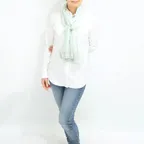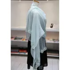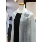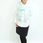 スタンダードな大判サイズと軽やかな質感で、巻きだけでなく羽織でも合わせやすいタイプです。トップスがほのかに透けて見え、上品な印象を与えてくれます。