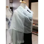 手仕事による繊細で上品なデザイン。両端にパール刺繍が施されているため、程よい落ち感を実現。ゆるっと巻くだけでシルエットが美しく決まります。