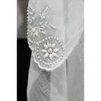 ステッチ刺繍にはパールの輝きを放つビーズを散りばめており、上品かつ華やかに仕上がっています。そのため、特にフォーマルな場面やパーティーシーンで大活躍します。結婚式やパーティー、会食や演奏会などにも使いやすく、ドレスやワンピースとの相性も抜群です。