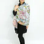大判サイズのストールで肩から羽織る使い方もできます。春夏の日除けや室内の冷房対策としても使いやすくなっています。
