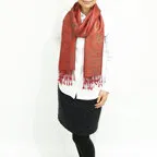 スタンダートな大判サイズで巻いても羽織っても、どちらも使いやすいタイプです。特に羽織は全体の印象がパッと華やかに、エレガントな雰囲気に変化します。