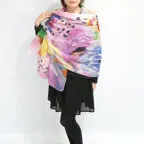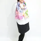 大判サイズのストールで肩から羽織る使い方もできます。春夏の日除けや室内の冷房対策としても使いやすくなっています。