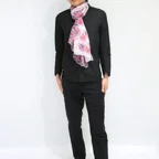 動くたびにドラマチックな残像を生む薄くて軽くて柔らかいシルク素材。巻き方によってアレンジしやすく、アクセント効果も高くなっています!