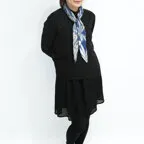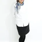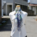 小ぶりなスクエアサイズで、アスコットタイのようにシャツやブラウスの中におさめて使うこともできます。室内でも巻いたままでいられるので使いやすくなっています。