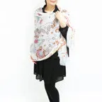 スタンダードな大判サイズで巻きでも羽織でもどちらでも使いやすくなっています。特に春夏の日除けや冷房対策としても使いやすく、ファッションのアクセントとしてなら一年中使うことができます。