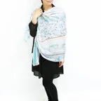 スタンダードな大判サイズで巻きでも羽織でもどちらでも使いやすくなっています。特に春夏の日除けや冷房対策としても使いやすく、ファッションのアクセントとしてなら一年中使うことができます。