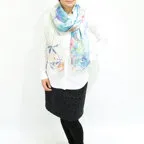 大判サイズのストールで肩から羽織る使い方もできます。春夏の日除けや室内の冷房対策としても使いやすくなっています。