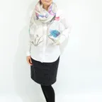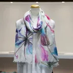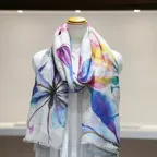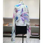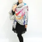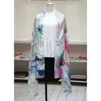 大判サイズのストールで肩から羽織る使い方もできます。春夏の日除けや室内の冷房対策としても使いやすくなっています。