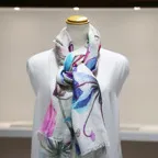 このストールは薄くて軽い生地です。使わないときは小さく折りたたみ、バッグに収納できます。持ち運びに便利で外出先でも邪魔になることはありません。