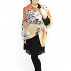 スタンダードな大判サイズで巻きでも羽織でもどちらでも使いやすくなっています。特に春夏の日除けや冷房対策としても使いやすく、ファッションのアクセントとしてなら一年中使うことができます。
