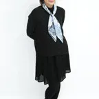 小ぶりなスクエアサイズで、アスコットタイのようにシャツやブラウスの中におさめて使うこともできます。室内でも巻いたままでいられるので使いやすくなっています。