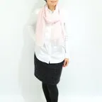 バランスの良いミドルサイズで巻きだけでなく羽織でも合わせやすいタイプ。程よい弾力性もありシワもつきにくいストールです。シワを気にすることなく、使いたい時にすぐに使うことができます。