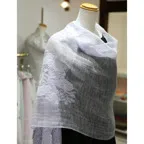 また、バランスの良い大判サイズで肩から羽織る使い方にも適しています。上半身をすっぽりと覆うことができるので纏うだけで印象を大きく変えてくれます。