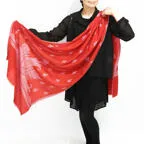 美しさが違う、選び抜かれた大人のカシミヤストール。鮮やかなレッドカラーに主張しすぎない煌びやかな刺繍が映える一枚です。