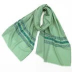 このカシミヤストールには最も繊細なインドカシミール地方ラダック産カシミヤ糸(パシュミナ)が使われています。そのため手織りカシミアストールの中でも最も目が細く繊細な生地となっています。薄くて軽くてやわらかい最上級の一枚です。
