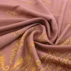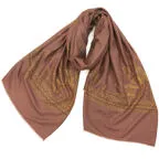 195cm×100cm大判ショールサイズで、巻きでも羽織でもどちらも使いやすいストールです。特に羽織は全面に施された刺繍が美しく輝き、サッとあしらうだけでゴージャスな雰囲気に変化します。横幅が特に長いのでドレスや着物などの羽織物としても重宝します。