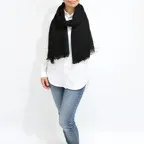 一巻きで決まる、新ベーシックストール。深みのあるブラックカラーでファッションによらず合わせやすくなっています。