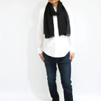 一巻きで決まる、新ベーシックストール。深みのあるブラックカラーでファッションによらず合わせやすくなっています。