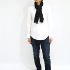 ごく薄手なのに首周りをバランスよく包む程よいボリューム感があり、空気を含んで暖かいので、シーズンを問わず一年を通して使うことができます。
