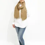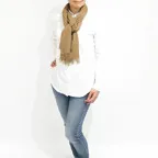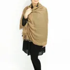 スタンダードな大判サイズで肩から羽織る使い方にも適しています。ゆるっと巻くだけで立体感を作りやすくなっています。春夏の日除けや冷房対策としても使いやすく、ファッションのアクセントとしてなら一年中使うことができます。