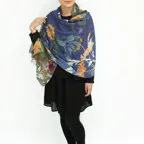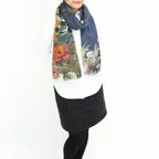 大人になるほどにこだわりたい、ストールのお洒落。多色使いの美しいフラワーモチーフ。巻き方によってさまざまな表情を楽しめます。