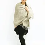 スタンダードな大判サイズで、首に巻くことはもちろん、室内でのひざ掛けにも、肩から羽織る使い方もできます。特に羽織りは、パッと華やかにエレガントな雰囲気に変わります。上半身を覆えるので、着ている服を気にせず合わせることができます。忙しい朝もコーディネートを気にする必要はありません。