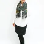 生地感よりカジュアルな普段使いにも、少しフォーマルなシーンでも使いやすいタイプです。スタイルや場所を問わず合わせることができる優れたストールです。
