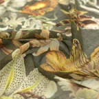 繊細なフラワーモチーフが奏でるエレガンス。品格のウールシルクストール。他にはないデザインで装いのアクセントに最適です。